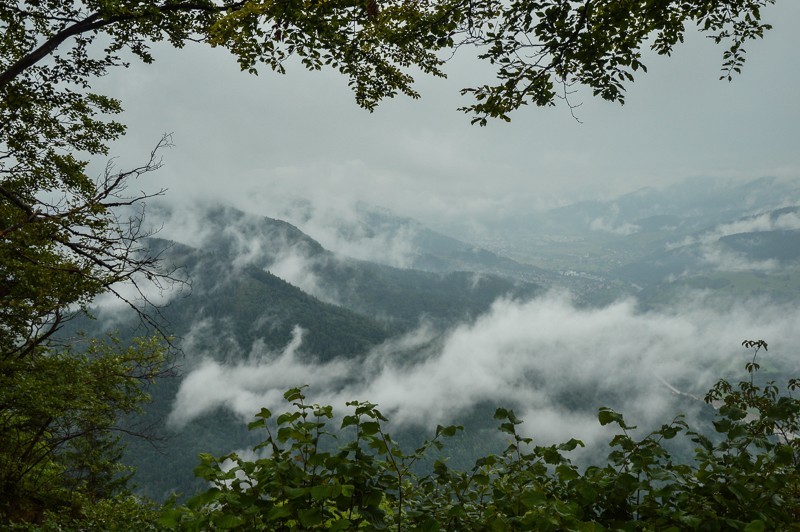 Z pobliskiego Hrdoša (950 m n.p.m.) nie widać już nic. Przez mglisty, zielony i deszczowy las idzie się całkiem przyjemnie, ale przecież nie o to chodziło, by mozolić się pod górę, pod Ostré, i na szczycie nie mieć żadnych widoków.