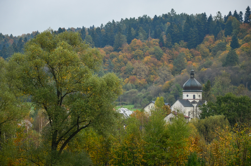 W Myczkowie zatrzymuję się na moment przy dwóch kościołach (jeden był w przeszłości cerkwią) i Muzeum Kultury Bojków (bojkowska chata widoczna jest z drogi). Stąd czeka mnie ostatnie podejście dzisiejszego dnia – na widokowe Wierchy.
